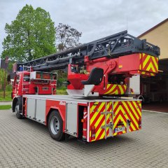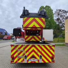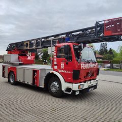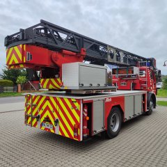 Im Anschluss erfolgte bei der Fa. Metz in Karlsruhe ein Refurbishment des Fahrzeugs (u.a. Generalsanierung des Leiterparks, Überarbeitung Rettungskorb, Neubezug der Sitze Fahrerkabine).