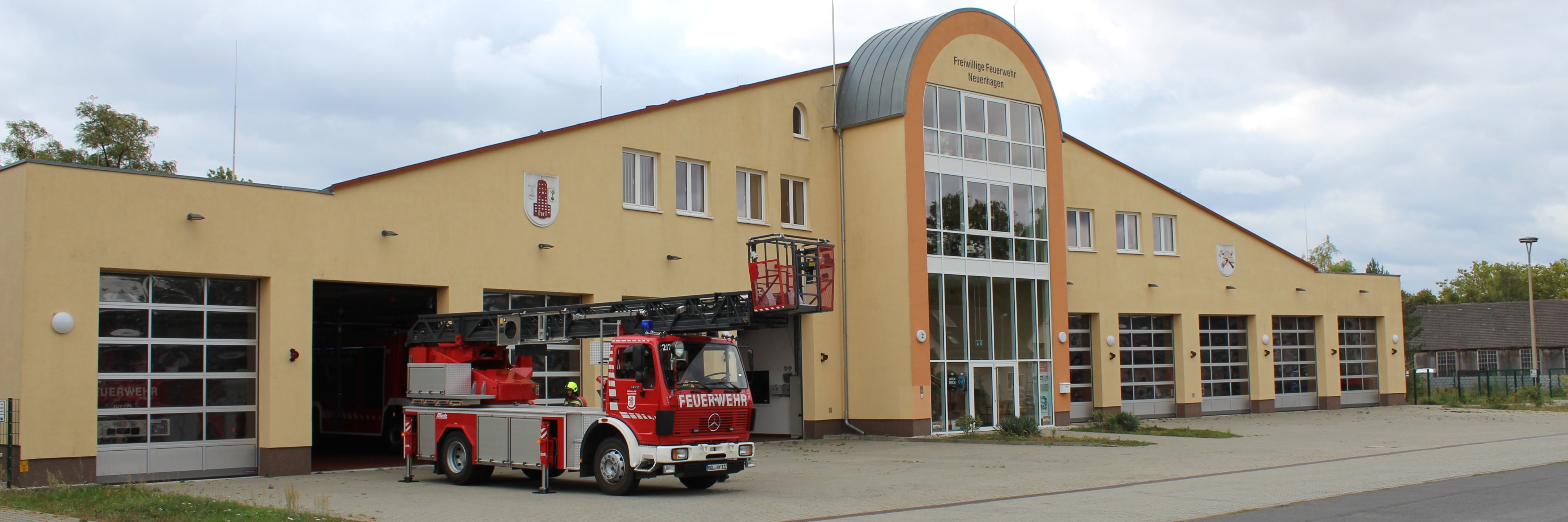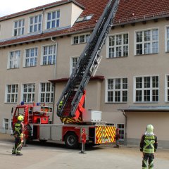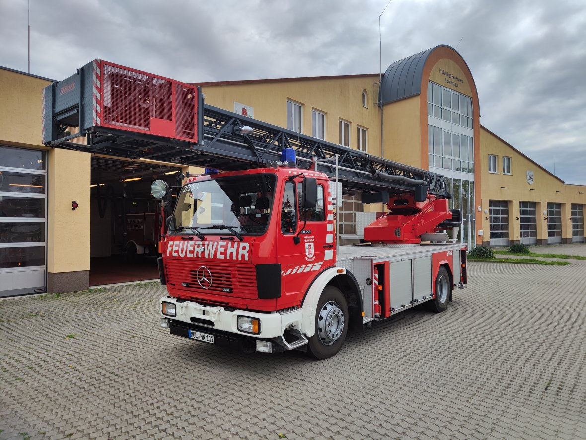Bei der Neuenhagener DLK 23/12 beträgt die Nennrettungshöhe 23m bei einer Nennausladung von 12m.