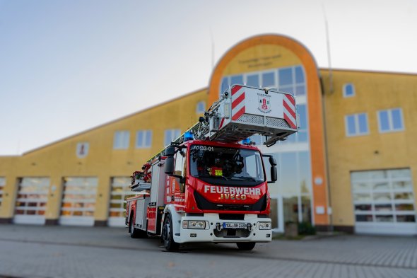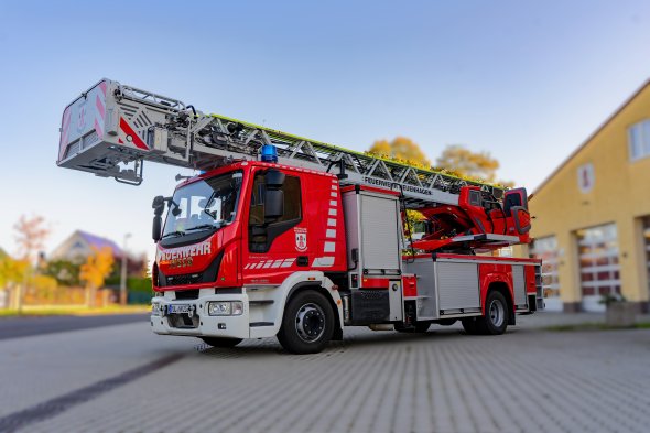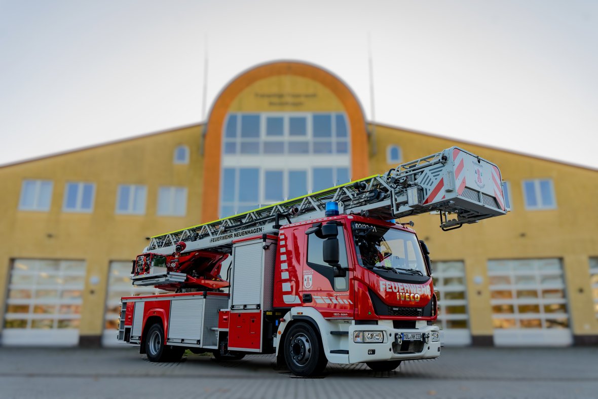 Bei der Neuenhagener DL(A)K 23/12 beträgt die Nennrettungshöhe 23m bei einer Nennausladung von 12m.