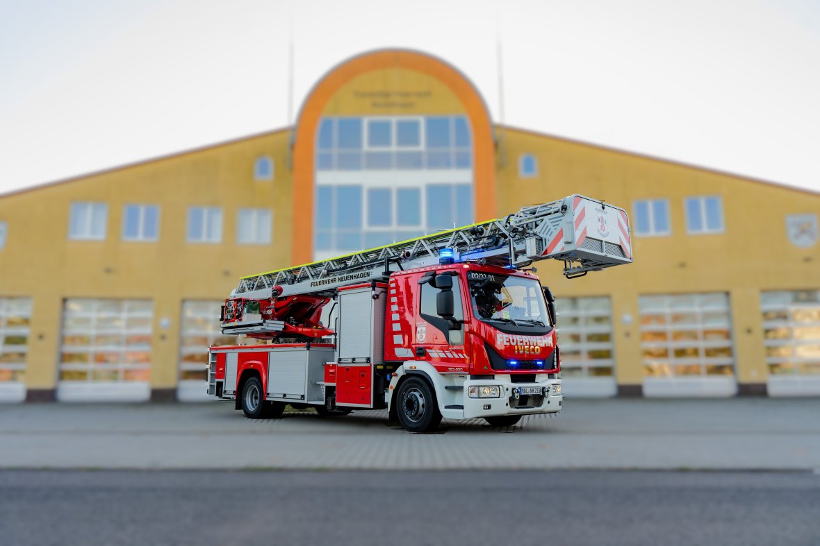 Als Besonderheit verfügt die Neuenhagener Drehleiter über ein knickbares Gelenk im oberen Teil des Leiterparks, wodurch das Umfahren von Hindernissen ermöglicht wird.