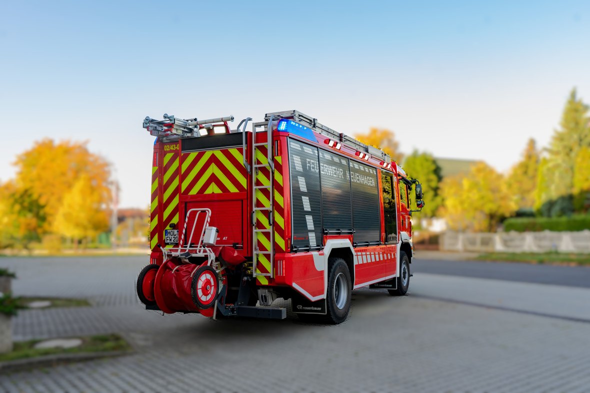 Bei Brandeinsätzen können sich zwei Trupps (jeweils bestehend aus 2 Feuerwehrkameraden/-innen) bereits während der Fahrt in der Mannschaftskabine mit Atemschutzgeräten ausrüsten und sind somit an der Einsatzstelle direkt einsatzbereit. Dies spart wertvolle Zeit.